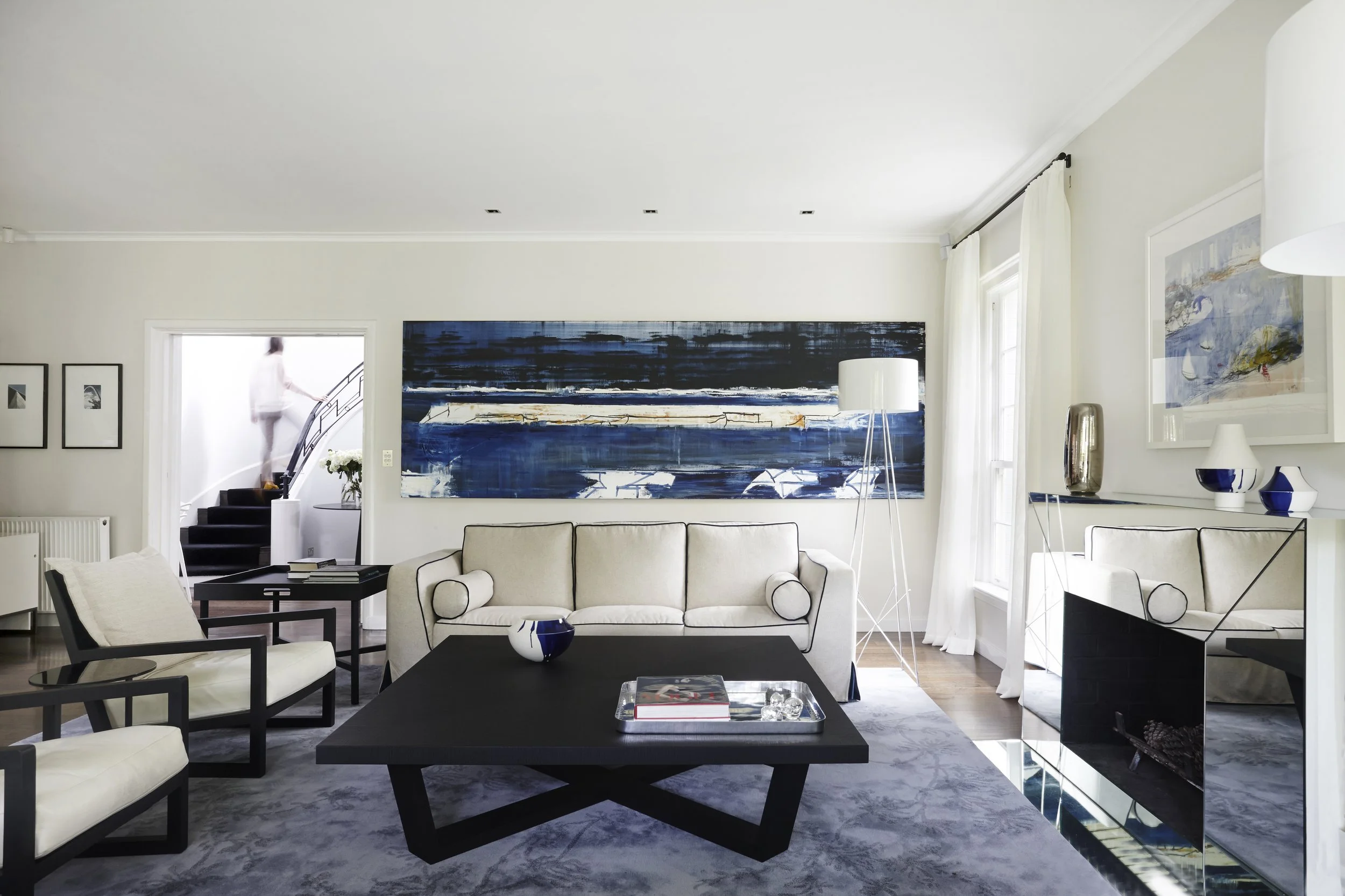 Internally, spaces are awash with solid and calming neutrals, enlivened with opulent blues and subtle shifts in texture and finish; the drama of the 1930s reimagined for the clients of today.