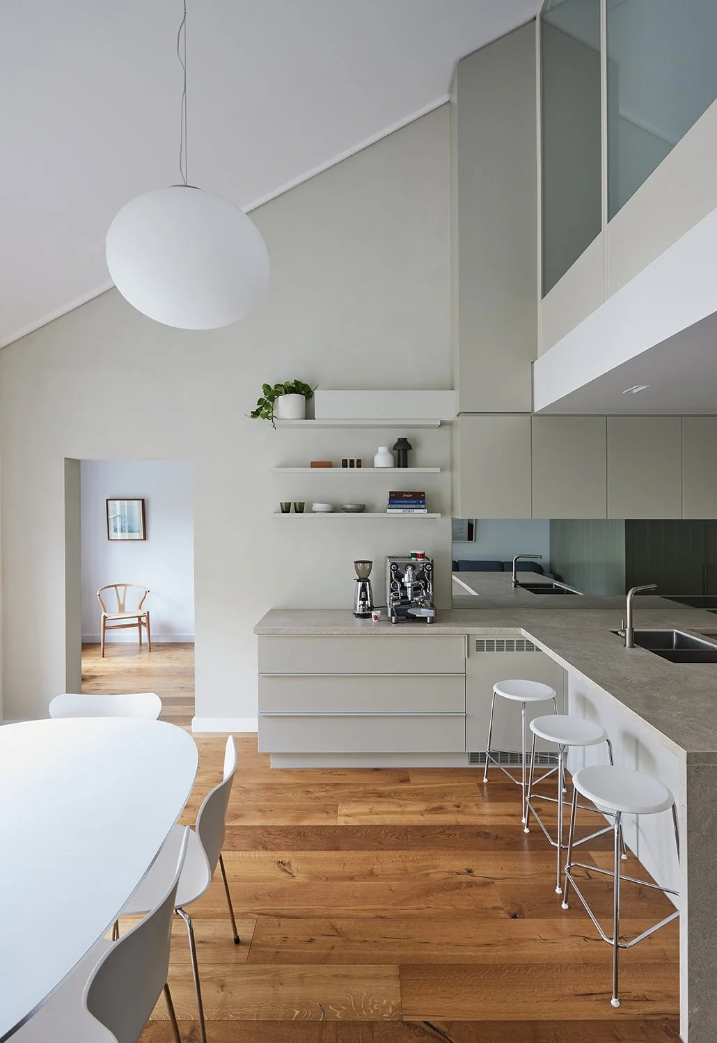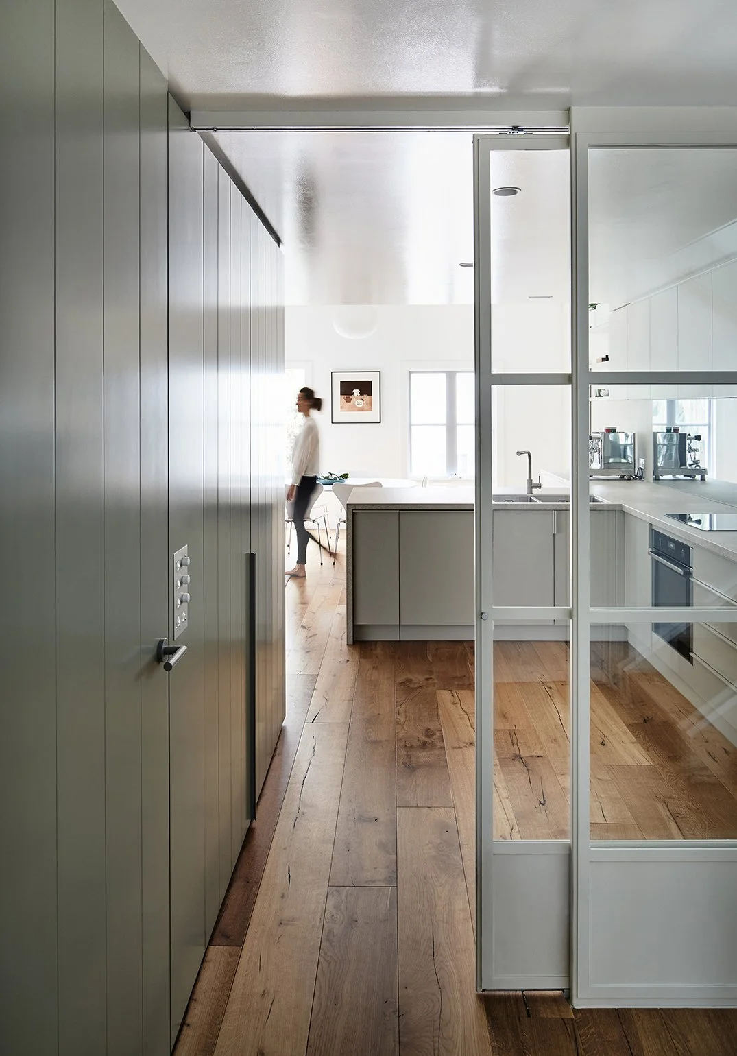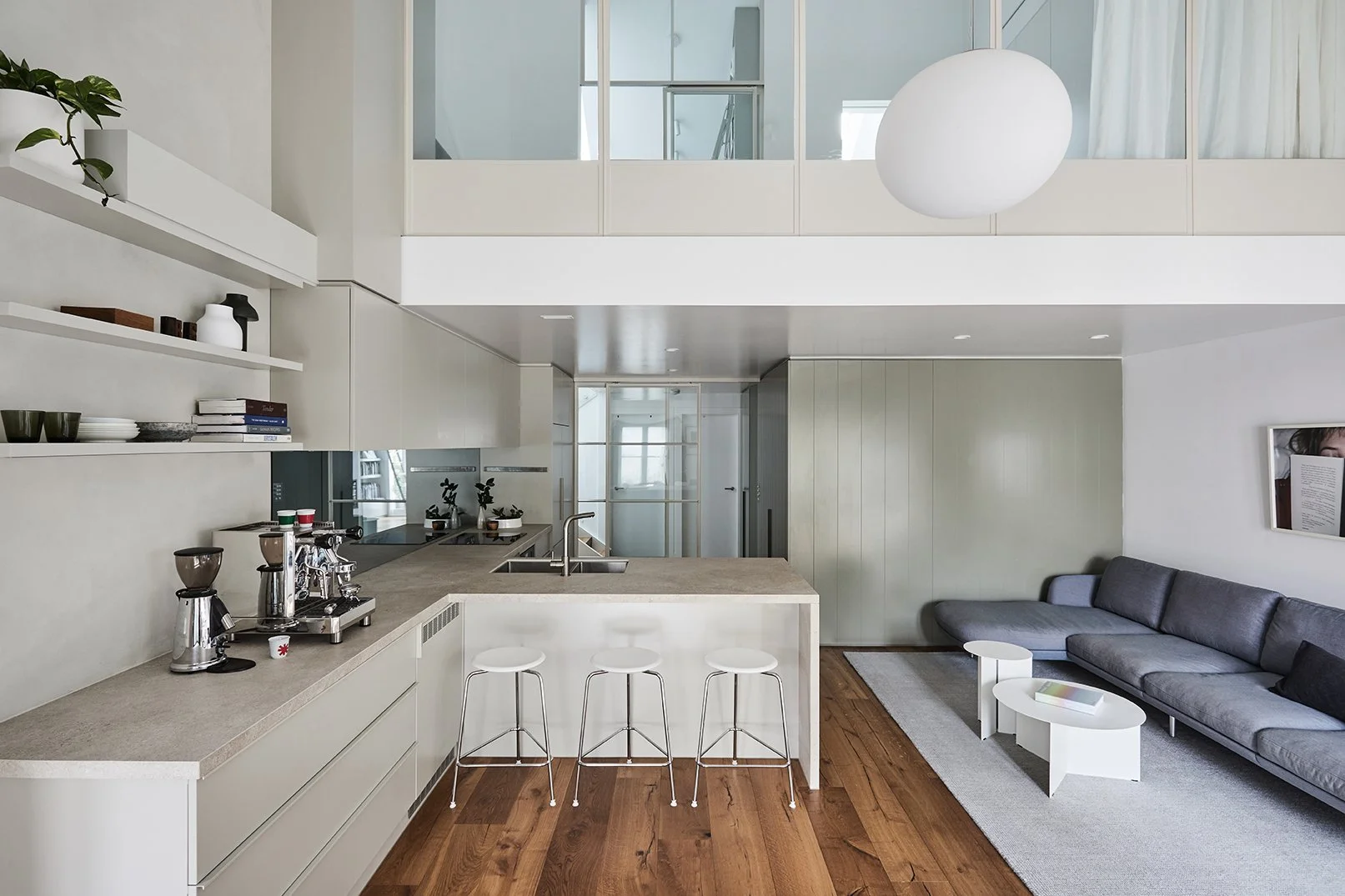 Any awkward carryovers from the original 90’s fit out of this two-level, three bedroom apartment have all but been erased in a dramatic transformation that prioritises functionality, usability and spatial experience. Built for a busy family of four relocating from California, clever planning provides generous kitchen zones – including a barista station – hidden pantry, light-filled landing study and enclosed loft-style bedroom. Throughout, custom glass sliding doors maximise light permeability while bringing privacy where and when required.
