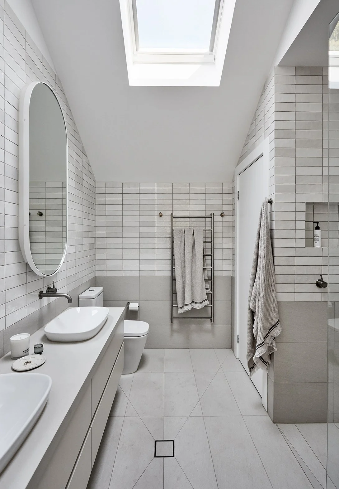 An elegant and grounded colour palette brings together soft paperbark greys, eucalypt greens and ocean blues, inspired by the family’s fond links to Greece, while textural and satin surface finishes reflect light and create a generous and joyful home.