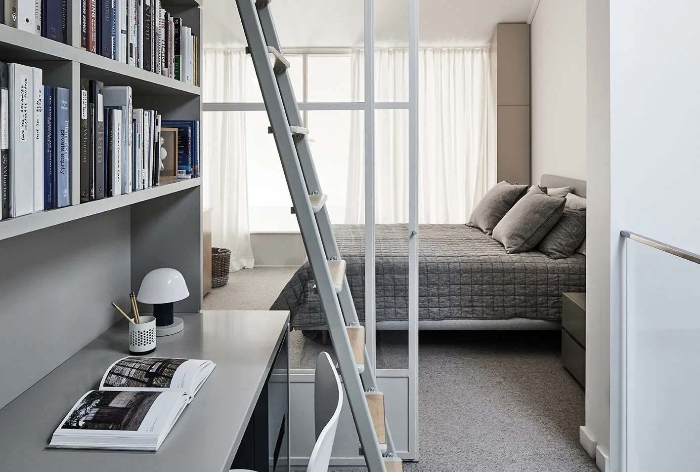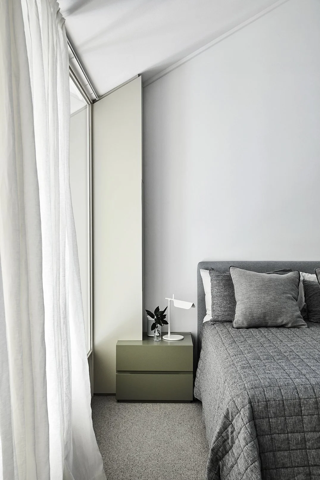 Soft paperbark greys and eucalypt greens combined with a clever private loft style bedroom make for a restful sanctuary in the city.
